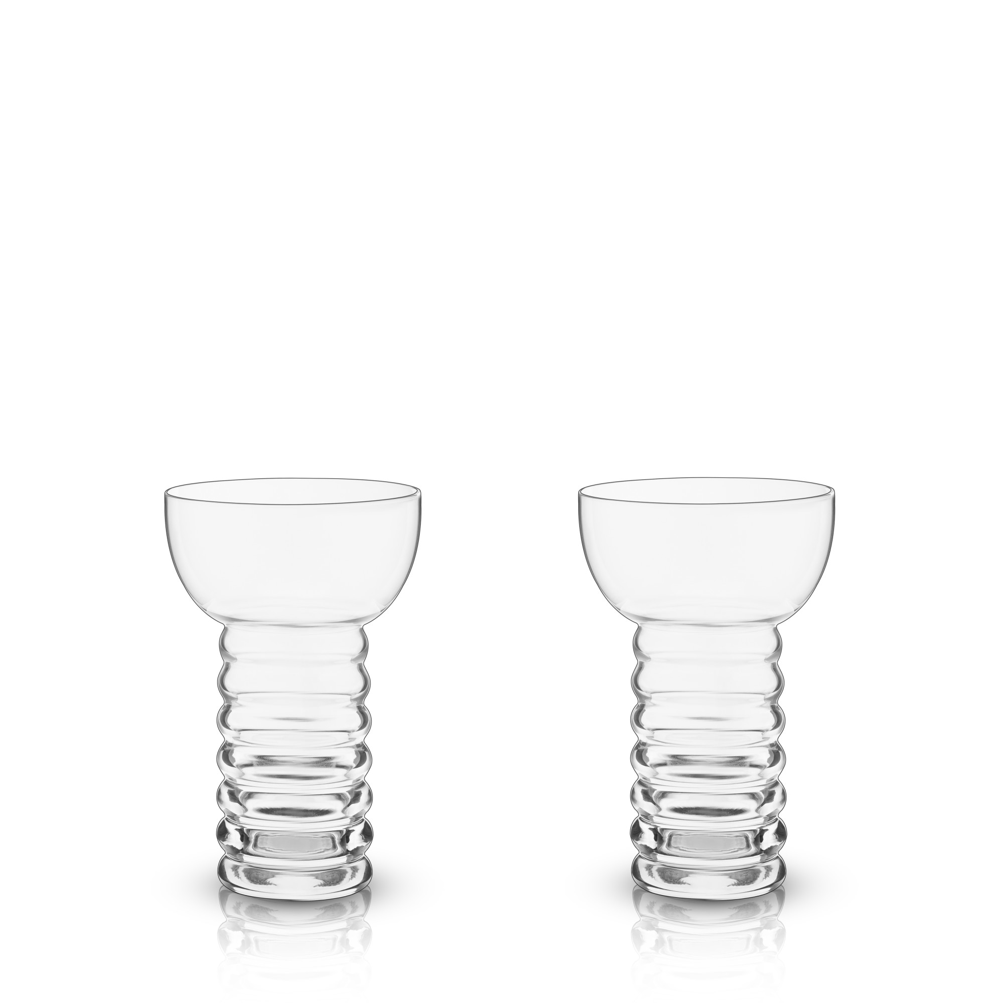 The Pearl Diver is a classic, silky cocktail with a storied past—and its very own glass style. Invented by the grandfather of Polynesian Pop, this infamous drink borrows from the 1930s novelty of the South Pacific, lending a distinct silhouette to the cocktail landscape with its ribbed stem and distinctive wide bowl. • Lead-free crystal • Classic tiki glasses • Set of 2 With an ideal weight and feel, this set of ornate cocktail glasses feels as good in your hand as they look on your bar. Bring the vibrant South Pacific to your home bar and enjoy a tiki night with friends, or mix up a Pearl Diver at any time.