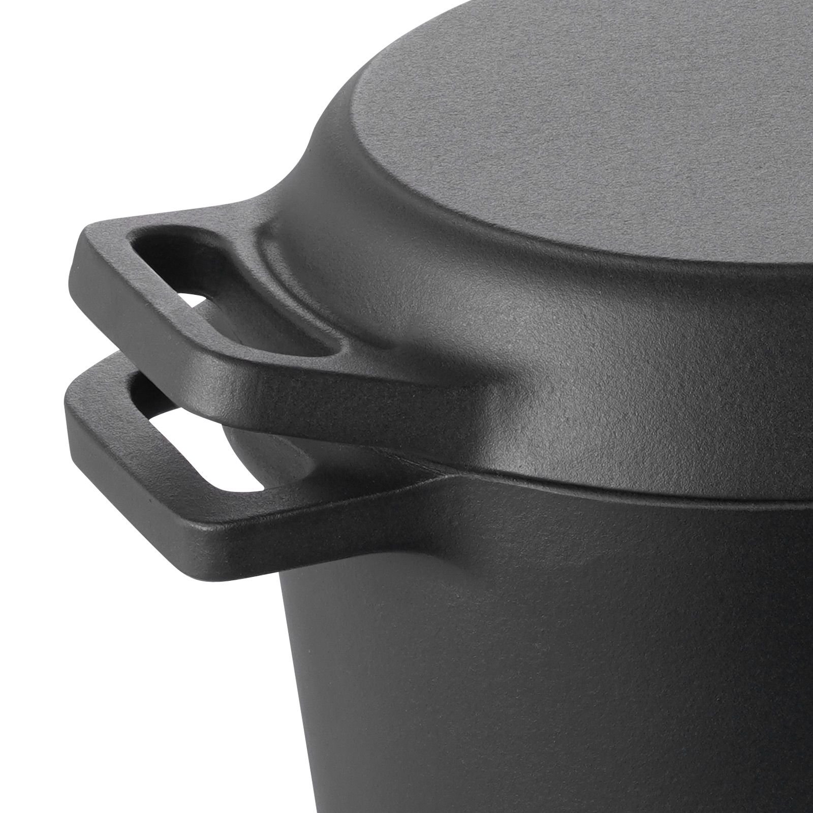 The practical 2-in-1 enameled dutch oven features a deep pot for stewing, stir-frying, and baking, while the flat-bottom frying pan is ideal for grilling. It meets all your cooking needs!