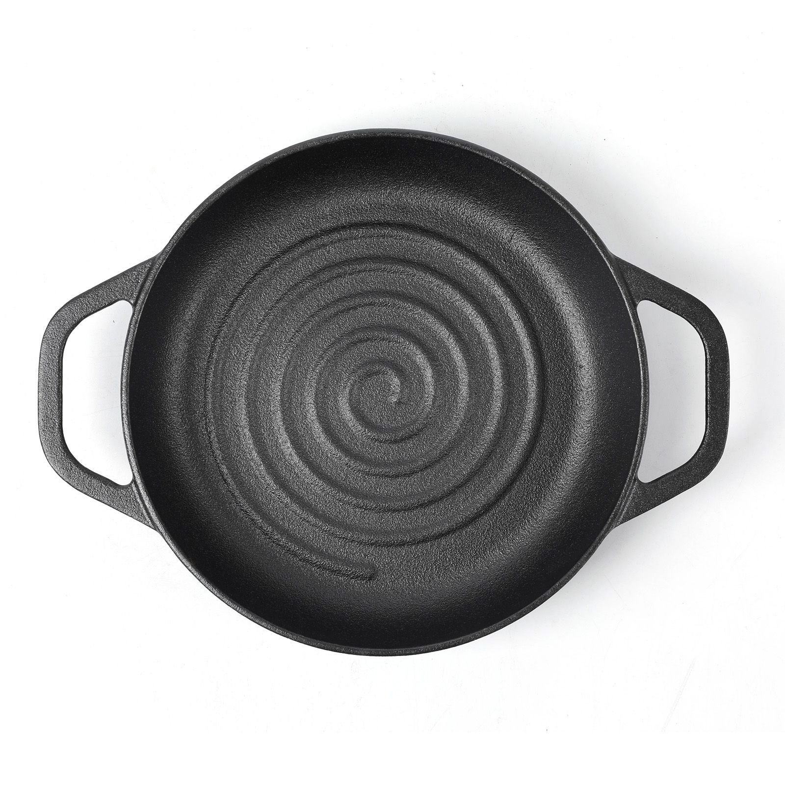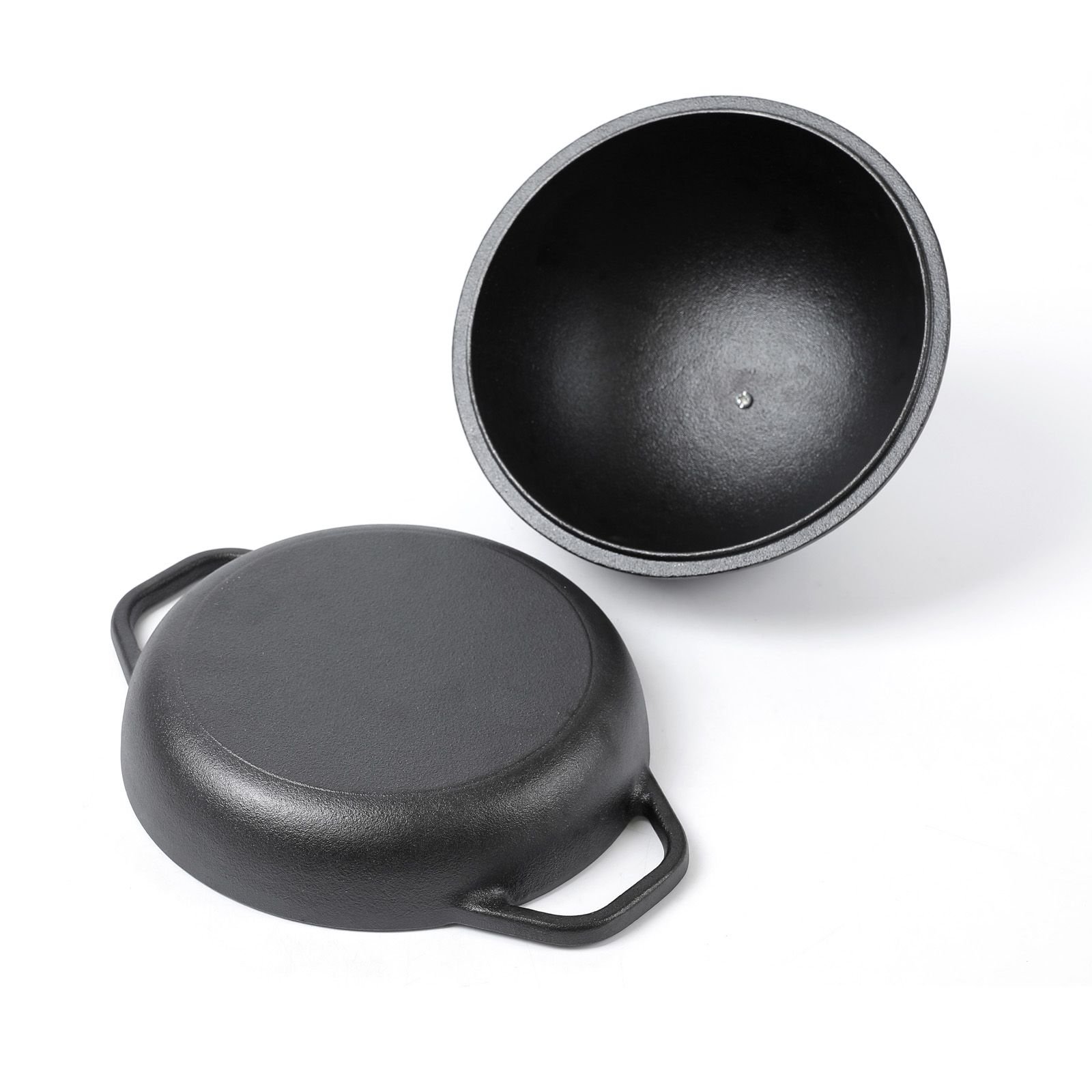 Say goodbye to your traditional pans. You can expect crispy crusts and moist interiors that rival any bakery using the HAWOK Bread Cloche. Its entire body is designed with cast iron and seasoned with vegetable oil. The cast iron delivers superior and even heats distribution. Its tight-fitting lid effectively seals in moisture and flavor and creates a thick, crispy crust and a light, airy inside. The lid features stainless steel knobs that are safe at all oven temperatures, making it easy to move. The low-profile base has raised ridges for even browning and marks the loaf with the lollipop. It can also be used as a skillet. In addition, you will receive two ergonomic ring handles that provide a comfortable, safe grip and ease of movement from kitchen to table. After finishing cooking, hand wash with warm water and dry thoroughly with a towel. This HAWOK bread cloche is the perfect present for weddings, housewarmings, birthdays, holidays, and more.