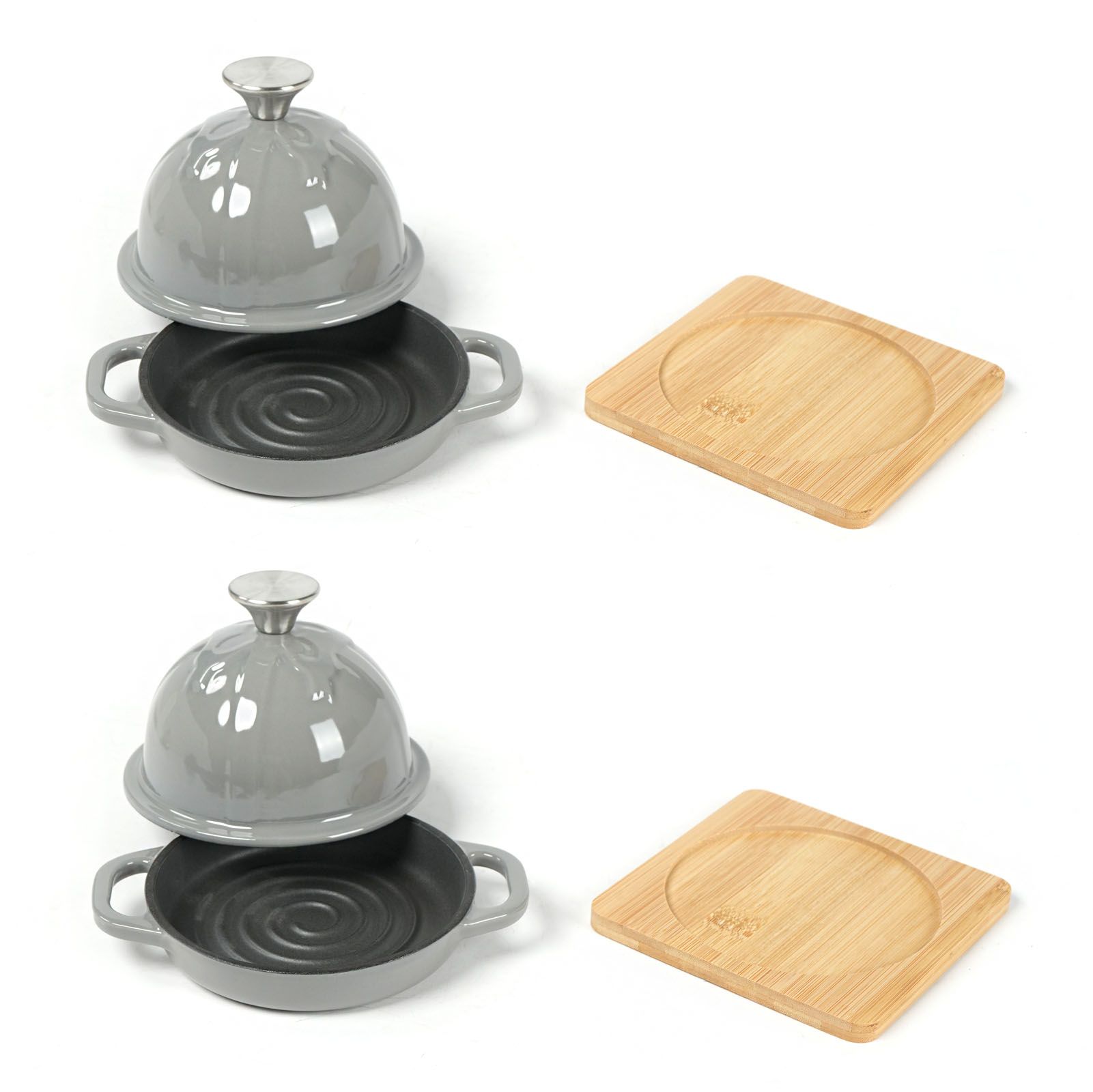 Home > HAWOK Enameled Cast Iron Garlic Roaster with Bamboo Tray, 5-Inch, BBQ Grill Garlic Baker, Mini Cocotte, Set of 2, Grey