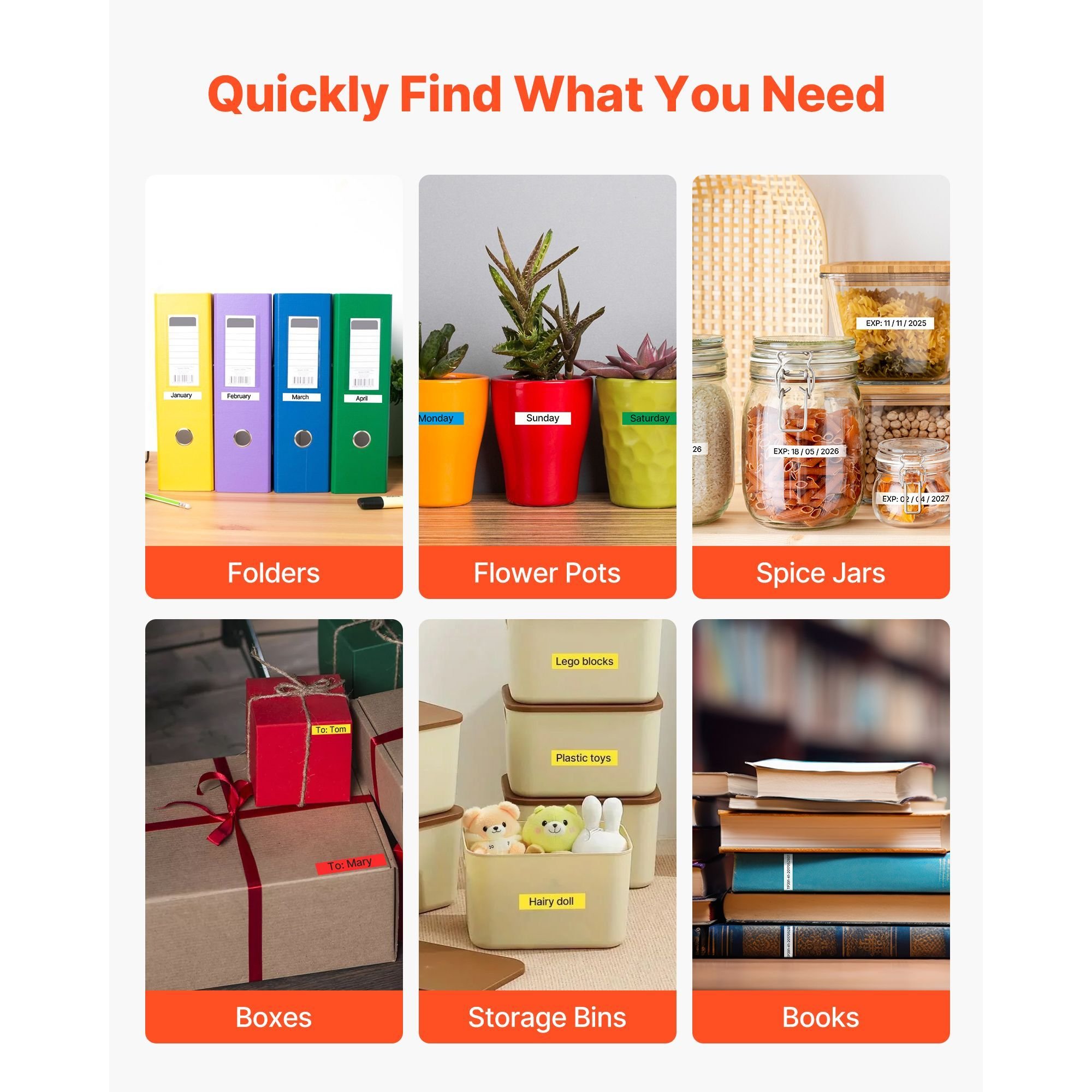 4.Versatile Use: Whether it's for folders, flower pots, spice jars, or books, this label cartridge helps you organize and identify items with ease. No more hunting for what you need-just a glance and it's done