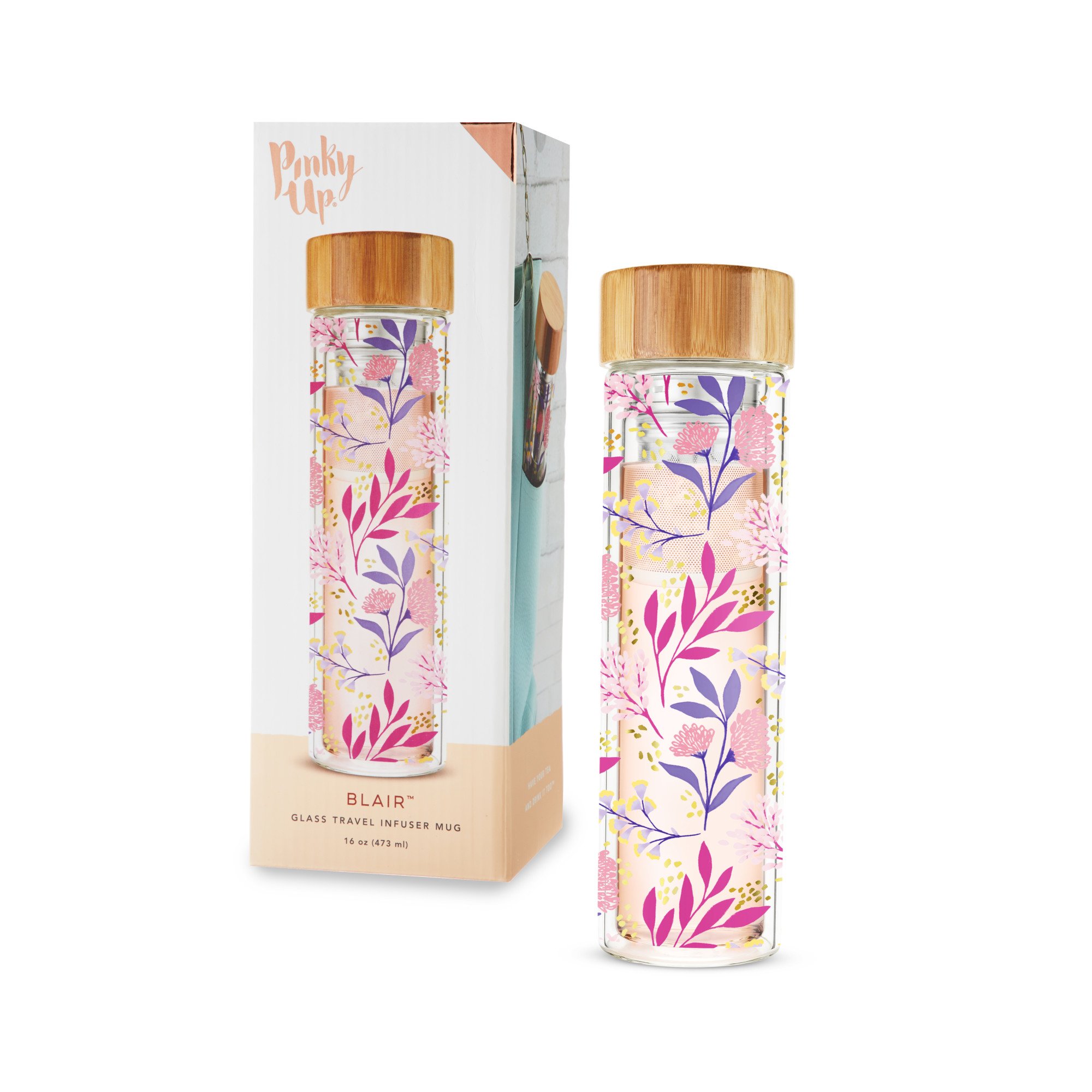 Blair™ Botanical Bliss Glass Travel Infuser Mug by Pinky Up®