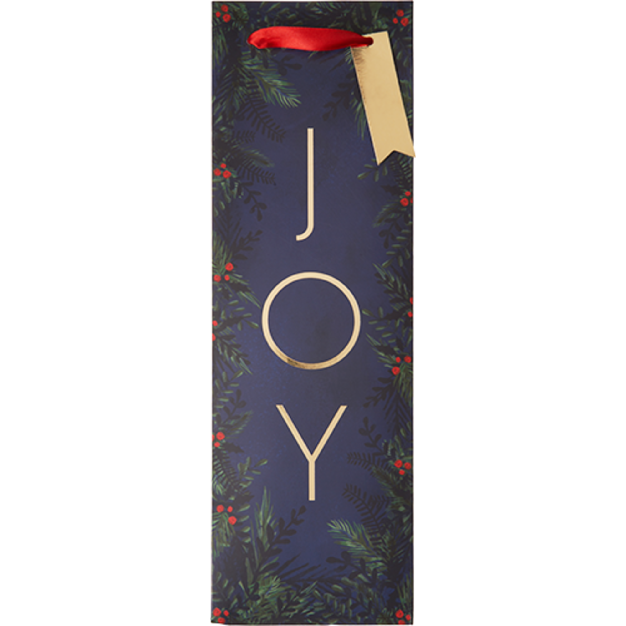 It's the word of the season, spread it near and far! Bring joy and give wine with this timeless single-bottle bag; ribbon handles, foil accents, and gift tag included.