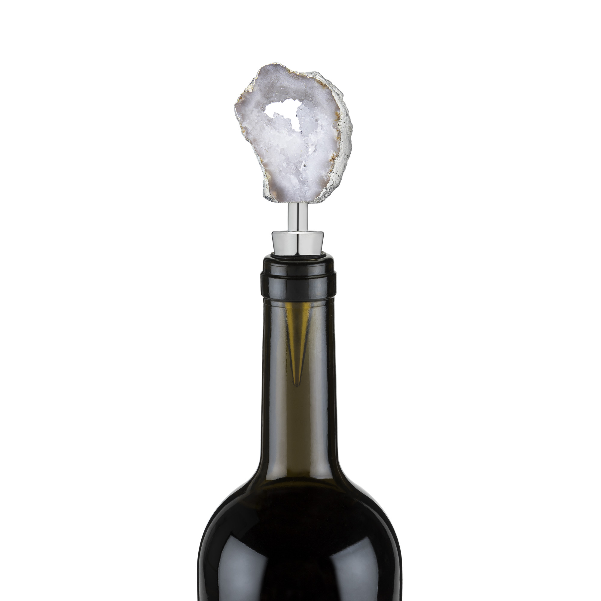 Shimmering white geode crystals with shining silver plating strike a harmonious balance of earthiness and sophistication. This on-trend geode bottle stopper will fit right in with other crystal and gem-based decor while providing a down-to-earth vibe.