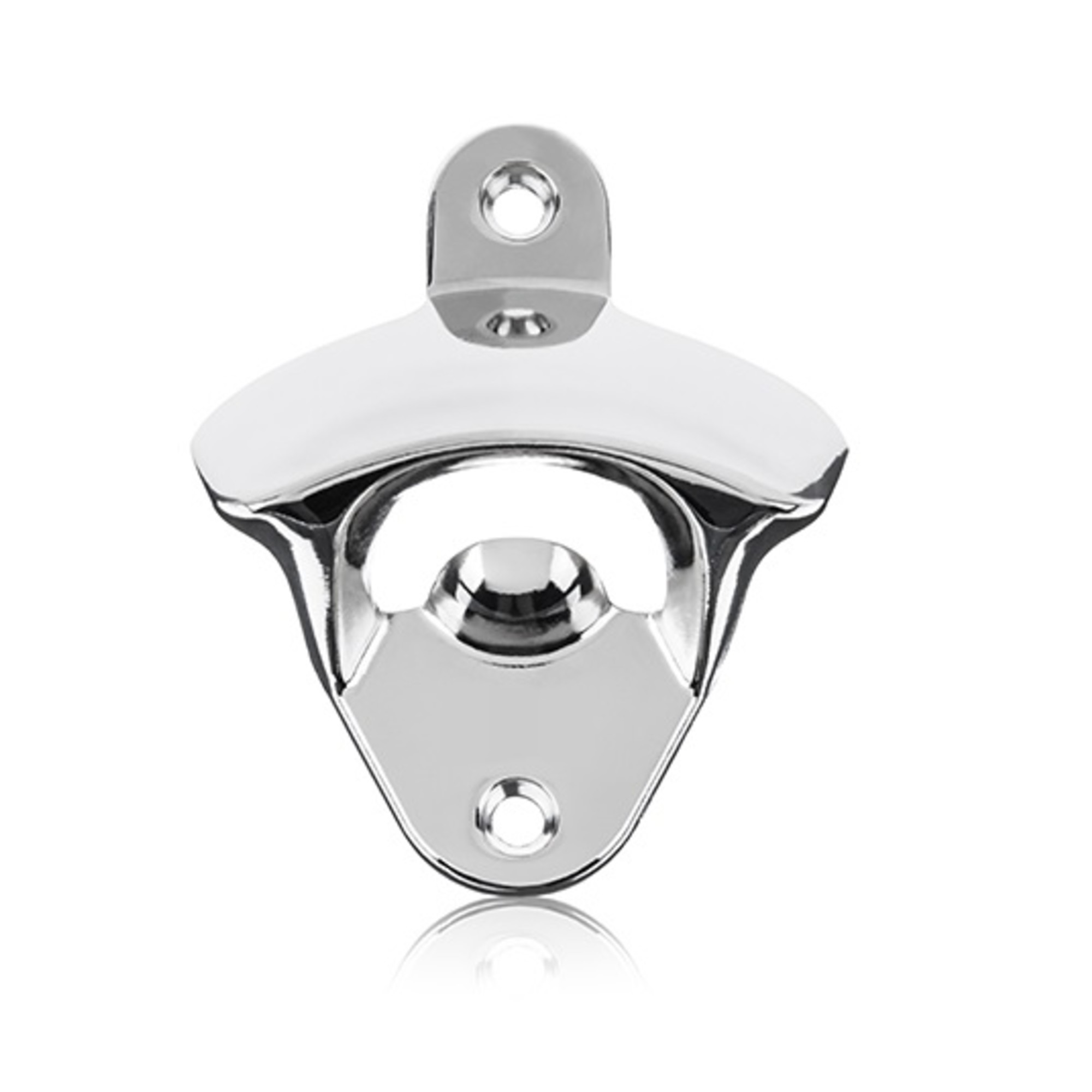 Polished metal brings a modern look to a classic wall-mounted bottle opener, the easiest way to open a beer. This bottle opener comes complete with screws for mounting in your kitchen or on your patio to last for years to come.