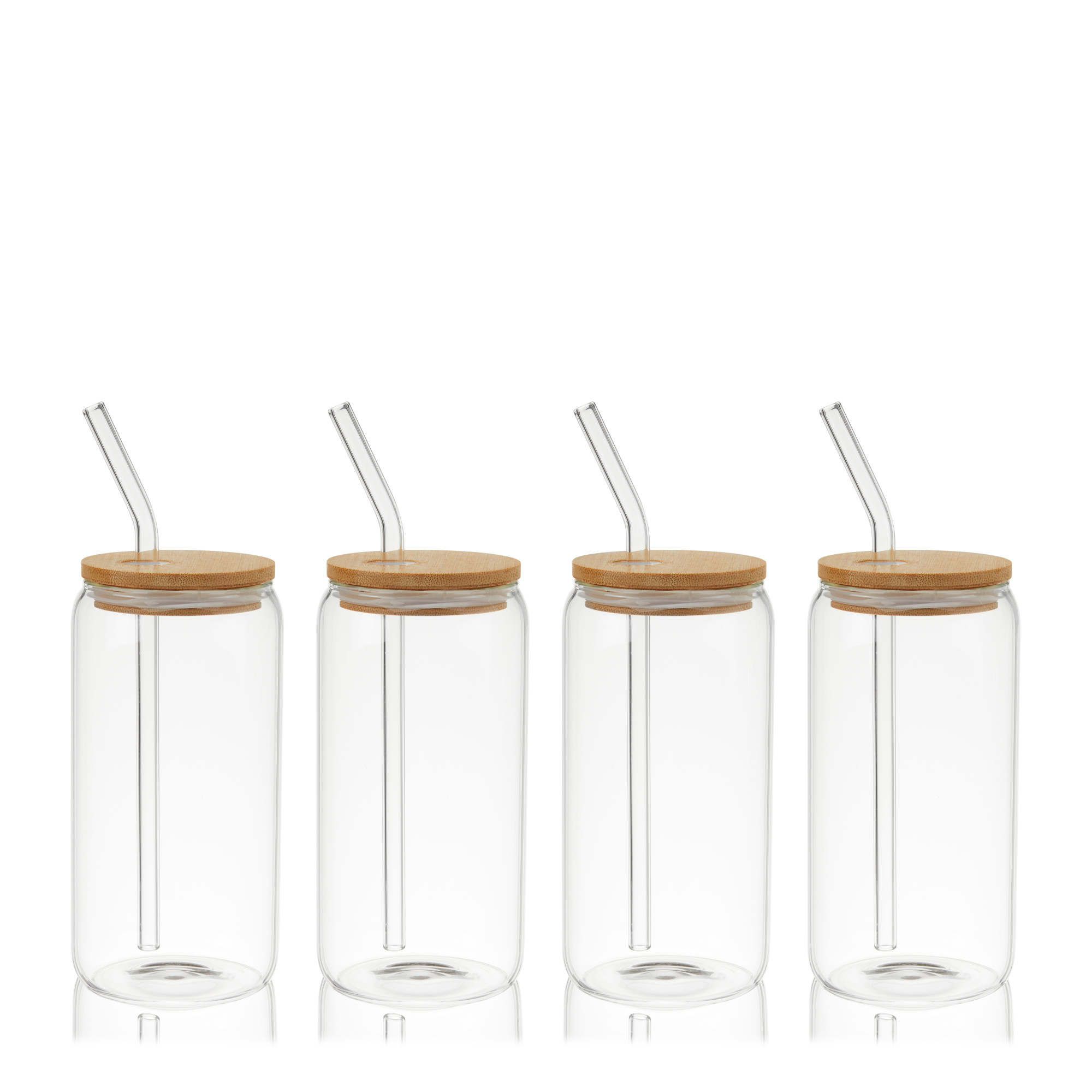 Whether you’re sipping iced coffee, lemonade, or a cocktail, these all-purpose glass tumblers with bamboo lids and glass straws are the perfect drinking glasses. These modern beer can glasses are made from temperature-safe borosilicate glass and hold 16 oz. of your favorite beverage. 16 oz. capacity. Hand wash recommended.